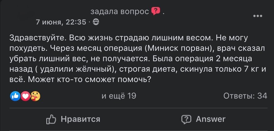 Вопрос из группы Фейсбук, с просьбой о помощи: