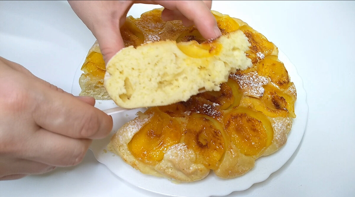 Всем доброго дня ! Сегодня приготовим влажный, нежный и очень вкусный летний пирог на сковороде. Пирог готовится на раз два . Абрикосы разделяем на половинки, вынимаем косточки и укладываем на сковородку застеленную пергаментам срезом вниз. В миску вливаем два крупных яйца, добавляем щепотку соли и начинаем взбивать, затем постепенно добавляем 50 г сахара и взбиваем до увеличения массы в объёме и побеления. В яичную массу вливаем 50 мл растительного масла и хорошо размешиваем. В миску просеиваем 160 муки, добавляем 1 ч л с горкой разрыхлителя, ваниль, размешиваем и частями всыпаем в яично-масляную смесь, замешиваем тесто. Тесто хорошо перемешиваем и выкладываем на подготовленные абрикосы Разравниваем, накрываем плотно крышкой ( крышка обязательно должна быть с отверстием для выхода пара), включаем плиту и на самой большой конфорке, на маленьком огне выпекаем пирог 30 минут. Прошло 30 минут, пирог хорошо поднялся, снимаем крышку и проверяем на готовность, надавливаем пальцами руки, тес