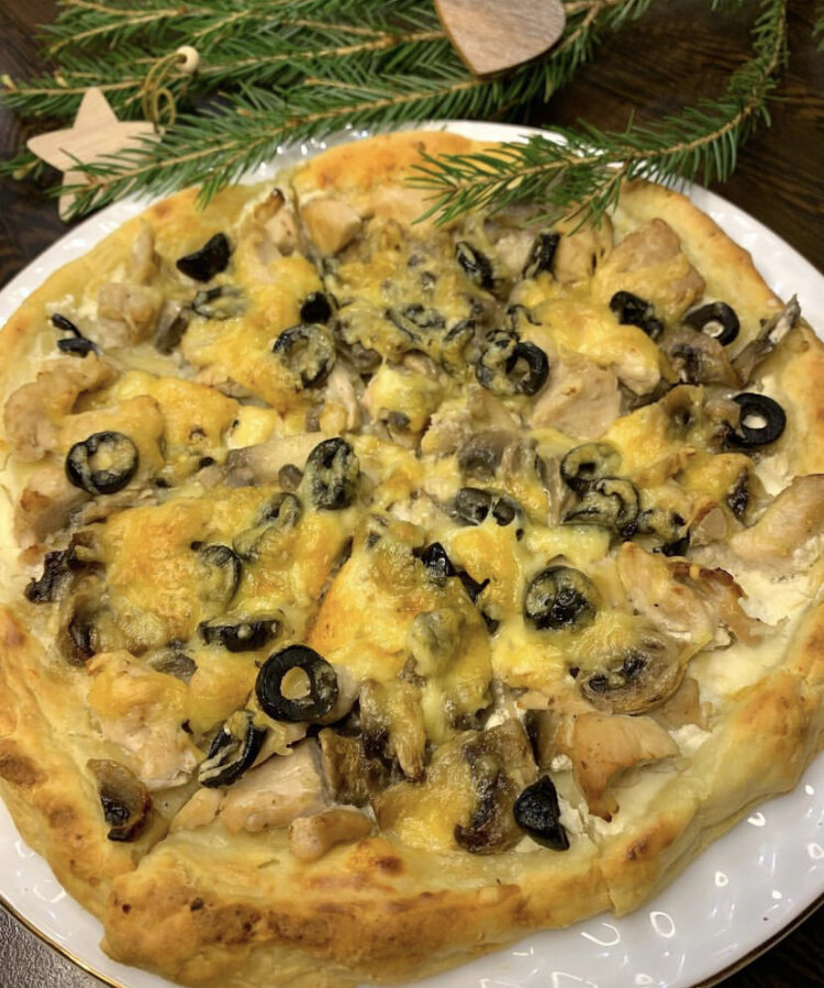🍕САМАЯ СОЧНАЯ ПИЦЦА🍕 Ингредиенты Тесто: Творог 5% - 180 г Мука (любая) - 100 г Разрыхлитель - 1 ч.л Яйцо - 1 шт Начинка: Куриное филе - 150 г Шампиньоны - 100 г Сыр - 50 г Маслины - 20 г Сметана 15% - 30г КБЖУ на 100 г: 194/17,6/6,7/15,8 🍕Способ приготовления🍕 Смешать все ингредиенты для теста, смазать противень маслом и выложить тесто в форме основы пиццы. Проткнуть тесто вилкой и выпекать в духовке 20 мин при 180 г. Куриное филе и грибы нарезать, обжарить. Добавить соль и любимых приправ. Затем достать полуготовую основу из духовки, смазать сметаной, выложить всю начинку, посыпать маслинами и сыром. Выпекать еще 8-10 минут при 180 г. 🥑Всем приятного аппетита!🥑