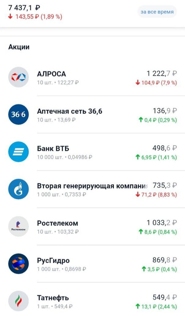 Все компании держу в портфеле за исключением Аптечной сети. Что то она меня не вдохновляет.