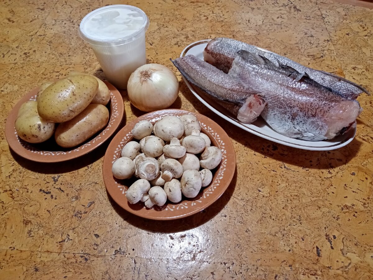 По уже установившейся традиции в четверг готовлю рыбу. На этот раз будет рецепт из монастырской кухни. У меня: Рыбу мою, чищу, режу на куски, солю и посыпаю специями. Выкладываю в форму, сверху репчатый лук полукольцами. Шампиньоны режу и выкладываю на рыбу. Картофель чищу, режу пластинками и выкладываю поверх грибов. Все заливаю смесью сметаны и молока, добавив в неё соль и перец. Закрываю фольгой и ставлю в духовку, разогретую до 200 градусов, на 30 минут. Снимаю фольгу, посыпаю тёртым сыром и снова в духовку на 10 минут до золотистой корочки. Любите рыбу, подписывайтесь на канал, ставьте лайки, пишите комментарии.