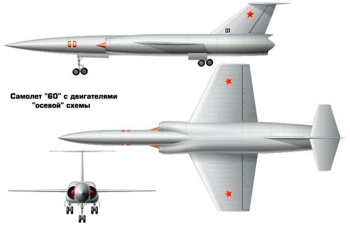 Сначала инициативу взяло на себя КБ Мясищева. Тамошние инженеры предложили проект сверхзвукового бомбардировщика М-60. Фактически речь шла об оснащении уже существовавшего М-50 ядерным реактором. Проблема первого в СССР сверхзвукового стратегического носителя М-50 как раз заключалась в катастрофических топливных «аппетитах». Даже при условии двух дозаправок в воздухе 500 тоннами керосина бомбардировщик с трудом мог бы долететь до Вашингтона и вернуться обратно.