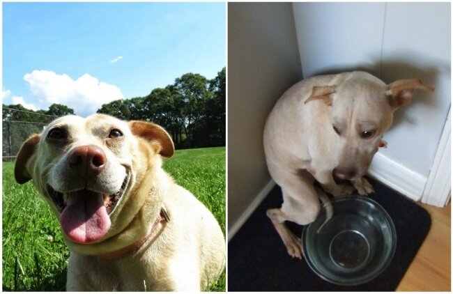 Эта история от моей подписчицы, мне прям понравилась: Я не собиралась заводить собаку, я люблю кошек. Всегда считала, что от них только шерсть по всему дому, слюни, они громко лают и их надо выгуливать в любую погоду, нет, это не для меня. Три года назад моя случайная знакомая нашла пса на улице и попросила помочь. Я нашла приют и помогла деньгами для ветеринарного осмотра и лечения, но «хозяева» быстро пропали и мне пришлось всё взять на себя. Это был огромный кобель, которому было 2-3 года, вес 13 кг при росте в холке почти 55 см! Он еле ходил – мышц просто не было, когти, как у ястреба, весь в шрамах, усыпан клещами, со следами от удавки на шее, плешивый, но очень жизнерадостный и явно «бывшедомашний». Пёс понимал, что такое, лифт, ванна, ошейник, хорошо себя вёл в машине. Собакина нарекли Фредом и после посещения ветклиники, он отправился на реабилитацию в частный приют. За неделю капельниц и жидких каш пёс встал и пошел. Огромная признательность всем работникам приюта! При кажд