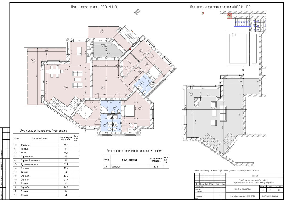 Проект и планировка одноэтажного дома с плоской крыше 297 кв.м с цокольным этажом на склоне.