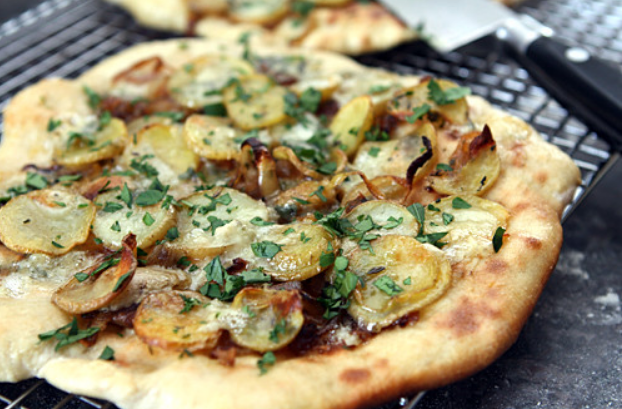 Всем нравится хлеб без замешивания потому, что его очень легко сделать - просто перемешайте все вместе и оставьте на весь день. А поскольку он довольно мягкий, его очень легко сформировать в круги руками, и он очень прост. При приготовлении большого количества пиццы, особенно если у меня есть гости, я немного предварительно выпекаю тесто, поэтому я не борюсь с этим и не устраиваю беспорядок, когда приходят друзья. Если у вас есть компания, вы также можете посыпать тесто картофелем и сыром, а затем просто испечь их прямо перед подачей на стол, так как для завершения им требуется всего несколько минут под грилем. Поскольку в этих пиццах играет главную роль картофель, попробуйте найти ароматные сорта. Часто на рынках есть фермеры, которые выращивают специальный картофель, и их стоит поискать, поскольку он намного вкуснее коммерческих сортов. Конечно, вы можете украсить каждую пиццу рукколой или даже яйцом и дать ей запечься в последние минуты приготовления. Каждую из них можно персонали
