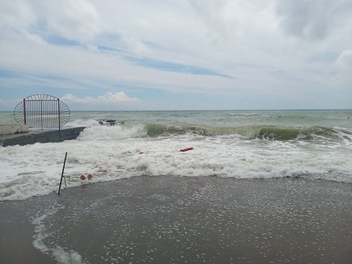 Итак, второй день отдыха в Судаке. Хоть мы и собирались поехать в Новый Свет, планы пришлось менять: шторм, сильный ветер и большая вероятность начала дождя вынудили остаться в Судаке. И мы таки не прогадали!!! Я обожаю большие волны, а их было с избытком!!! Да такие мощные! Несколько пляжей в этот день просто напросто не стало, т.к. волны добивали до самой набережной. Тем не менее, мы расположились в районе ресторана с деревянным пиратом глядящим в подзорную трубу (не знаю, как точно называется). Все эти дни, владельцы гидроциклов, катеров и прочих бананов терпят огромные убытки: шторм вынудил всё их хозяйство вытянуть на берег и теперь они тоскливо смотрят на непогоду, в ожидании когда это всё закончится. Перед каждым лежалищем первой линии выстроены вот такие простецкие защитные гидросооружения: вал-ров-вал-ров. Сомнительная защита от волны:) После каждого наката волны, сооружение приходится поправлять. А толку-то... Море есть море!!! Полчаса купания, катания на волнах и н