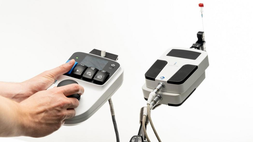 Не все хирургические роботы должны быть большими, похожими на осьминогов машинами с множеством рук и инструментов - они могут быть совсем маленькими, чтобы выполнять конкретную работу. Компания Interventional Systems выпустила Micromate, коробчатого робота с электродвигателем, который крепится к операционному столу и позволяет хирургам дистанционно проводить чрескожные процедуры под контролем изображения, не подвергая себя облучению, которое возникает при рентгеноскопии или компьютерной томографии в режиме реального времени. Недавно австрийский производитель устройств получил разрешение FDA на применение в клинических условиях для своей миниатюрной машины. Разрешение для применения в Европе компания получила еще раньше. Micromate разработан как универсальное решение для наведения инструментов и работает с собственным оборудованием хирурга практически при любой процедуре, проводимой с помощью прямой иглы, такой как управляемые биопсии и абляции. Используя джойстик, хирург может выравнив