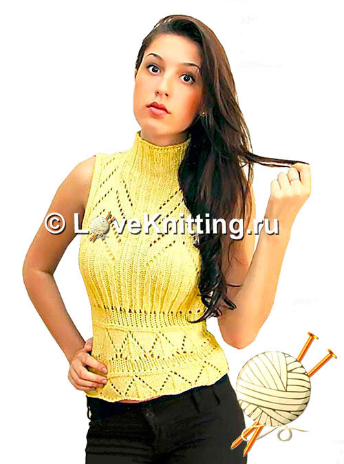 Эффектный топ с открытыми плечами, закрывающий грудь и шею, – великолепное решение для летнего сезона. Размер S-M ВАМ ПОНАДОБИТСЯ УЗОРЫ Лицевая гладь: лиц. р. – лиц. п., изн. р. – изн. р.; Изнаночная гладь: лиц. р. — изн. п., изн. р. — лиц. п.; Резинка 2 х 2: попеременно 2 лиц. п., 2 изн. п.; Узор «зубчики» (14 р.): вязать по схеме 1, в изн. р. петли и накиды вязать изнаночными. Резинка со снятыми петлями: 1-й р.: попеременно 1 лиц. п., 1 изн. п.; 2-й р.: лиц. п. вязать лицевой, изн. п. – снять, нить перед работой; 3-й и след. р.: провязывать лицевыми снятые петли и снимать изнаночными лицевые петли предыдущего ряда, оставляя нить перед работой. Ажурная полоса (2 р.): 1-й р.: * 2 п. вместе лиц., накид *, повторять от * и до* до конца р.; 2-й р.: изн. п. Ажурный узор: вязать по схеме 2, в изн. р. петли и накиды вязать изнаночными. 2 п. вместе лиц.: см. Азы; 2 п. вместе лиц. с наклоном влево: см. Азы.; 3 п. вместе лиц. с центральной п.: см. Азы. Особые убавления (лиц. сторона): справа