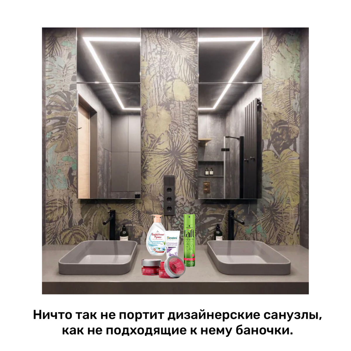 Ничто так не убивает дизайнерские санузлы, как баночки и скляночки. Хочется от них избавиться совсем, но вариант «мыться только водичкой» мало кому подходит. Да и вариант «мыться только вон тем гелем в красивой баночке» тоже часто вступает в противоречие с желанием скупить стопятьсот кремов для антицеллюлитности попы. Так что же делать?⠀ Покупать только гели-кремы в красивых баночках. Подходит толстошкурым уходопофигистам с обострённым чувством эстетики. Никому, короче. Покупать то, что нравится/подходит и переливать в красивые баночки. На первый взгляд, это кажется удачной идеей. Но тот, кто регулярно переупаковывает косметику в самолётный формат, вздрогнет. Пену для укладки не перелить. Маску для волос перекладывать чайной ложечкой — то ещё удовольствие. Любимый и самый подходящий дезодорант оказывается шариковым. Рассыпчатую пудру фиг придумаешь, куда переложить. Ампулы с сывороткой вообще неформат. 🤪 Всё в шкаф. Что не в шкаф, то в коробочки. Что не в коробочки, то в корзиночки. Д