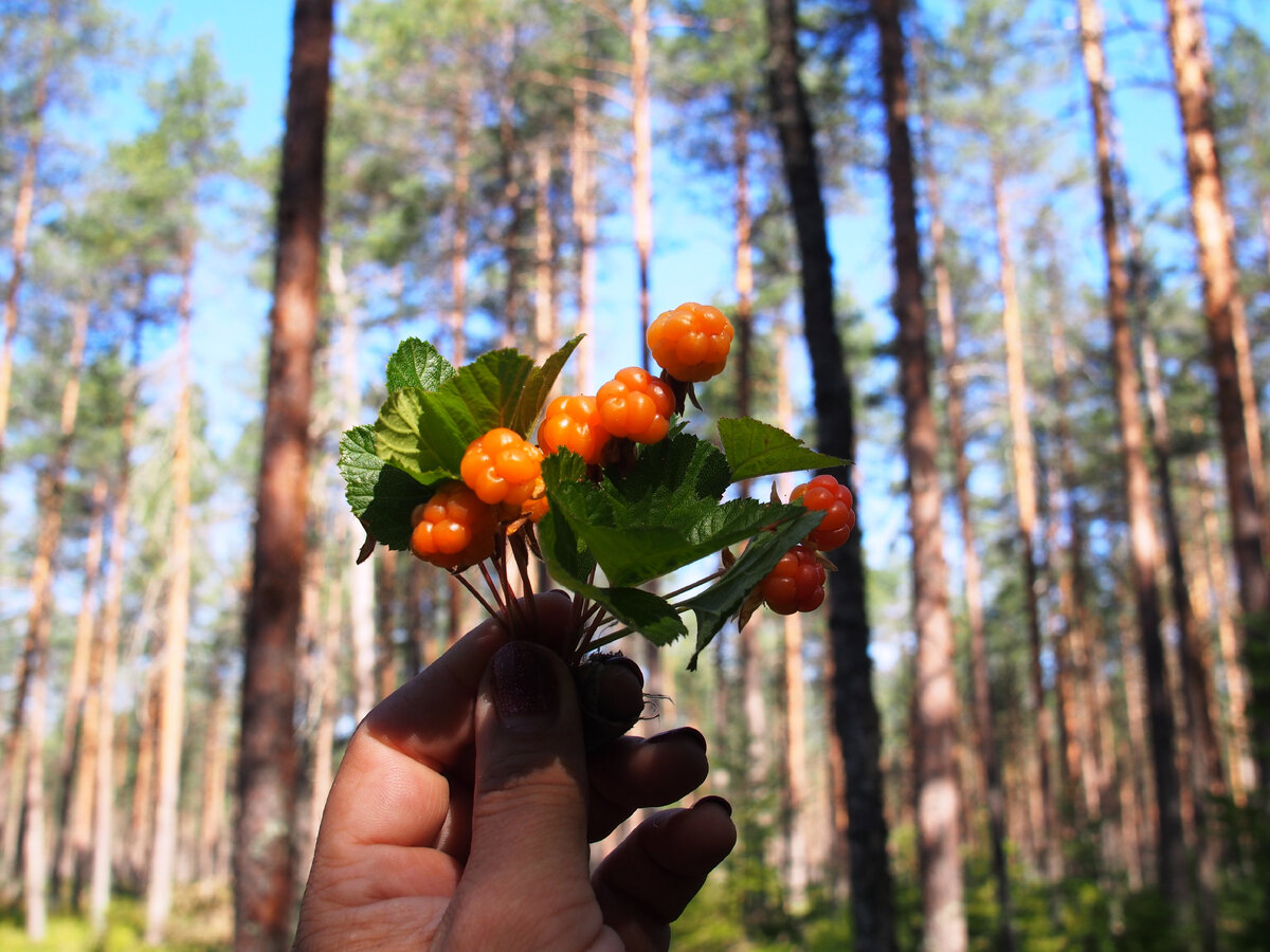 Измождённое жарой болото не чавкает под ногами, а будто поскрипывает пружинами истомившегося от жажды мха. Воздух меж рыжих стволов почти не двигается, отчего достиг высшей концентрации смолистости. Дышится знойно, но глубоко. Черника, буйно отцветшая на майском тепле, словно миллионы росинок расселась по опаленным солнцем веткам, вбирая из зеленых стеблей последние соки, чтобы налиться спелостью. На чисти болота, там, где обычно некуда ступить меж некрупных, но в изобилии морошин, нынче пусто - только бурый морошковый лист укрывает болото не по-июльски осенним ковром. Но ближе к тенистым опушкам начинают попадать одинокие ягодины - крупные, налитые красным, готовые вот-вот разбухнуть и упасть в ладошку тяжелой янтариной. Мимо таких ягод уж не пройдёшь! Кланяюсь каждой, вдыхая тягучий аромат багульника, осевший под тяжестью соснового жара. Звонко щёлкают звездочки плодоножек недозрелых ягод - день-два полежат дома и отмякнут. Странная ягода морошка - у каждой свой вкус. Хрумкает пресн