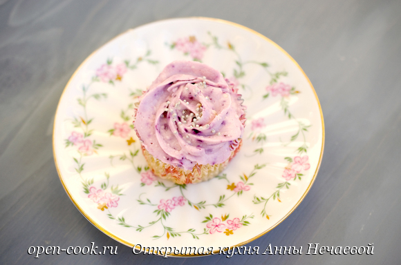 Еще один прекрасный крем для капкейков. Очень простой и быстрый в приготовлении, нужно только смешать все ингредиенты в миске и все. Но из-за творожного сыра крем может иметь чуть солоноватый привкус, что не всем нравится. Зато крем имеет прекрасную текстуру и чудесно себя ведет, так что его легко можно использовать и для тортов. В него можно добавить различные ягодные и фруктовые пюре, это придаст ему дополнительный вкус и цвет, никакие красители не понадобятся. На фотографии, например, крем на творожном сыре с добавлением черничного пюре. Указанного количества крема хватает примерно 18-20 капкейков: Все ингредиенты сложить в миску. И взбить миксером до однородного состояния. Вы можете добавить в крем ягодное или фруктовое пюре. Но делать это лучше по чуть-чуть, т.е. добавляя по 1 столовой ложке пюре, чтобы получить хороший вкус и цвет. Здесь я использовала черничное пюре и добавила его 3 столовых ложки. Приятного аппетита! Рецепт этого крема я взяла на этом сайте. Рецепт впервые опуб
