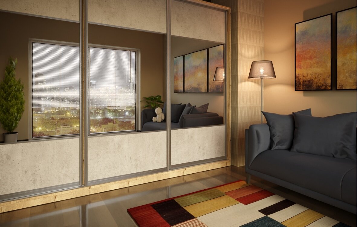 Дизайн фасада купейного шкафа может быть изготовлен в различных вариациях, что даст возможность подобрать модель в соответствии с оформлением интерьера комнаты. В качестве декоративных элементов может использоваться зеркальная либо стеклянная поверхность, бамбук, фотопечать, пескоструйный орнамент, натуральная либо искусственная кожа.