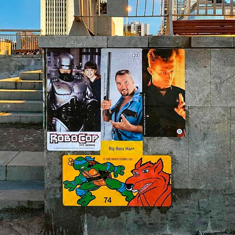 Стрит-арт художник A11c1ear расклеил по центру города огромные реплики наклеек из жвачек 90-х. Черепашки-ниндзя и Робокопы появились на улице Воеводина, проспекте Ленина и на набережной возле Театра Драмы.