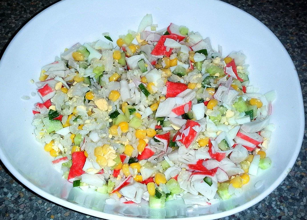 Вся семья в восторге: нежный и вкусный салат с крабовыми палочками и кукурузой