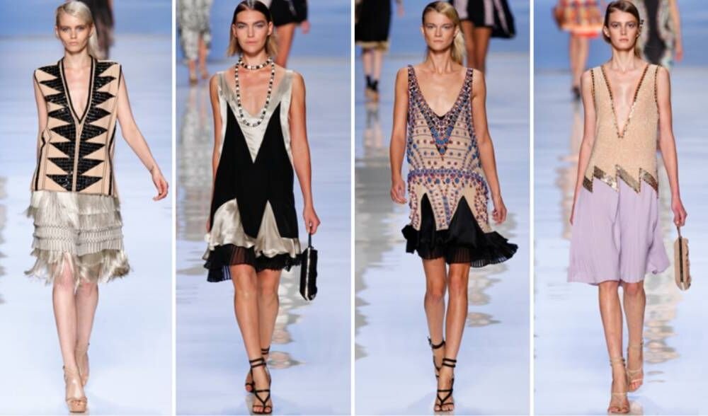 Этот роскошный, экстравагантный стиль появился в Европе в 20-х годах прошлого столетия в результате слияния двух стилей - модерна и неоклассицизма. В это послевоенное время в моду вошли короткие женские стрижки, одежда больше не подчеркивала фигуру, появился культ худенькой женщины с формами, больше подходящими подростку. Курение перестало быть табу, стали использоваться длинные стилизованные мундштуки и портсигары. Основой стиля служит платье, по крою напоминающее римскую тунику, с простым силуэтом, либо совсем прямое, либо с заниженной талией, длина может быть от "чуть выше колена" до "пола", допускается стилизованный шлейф и многоярусные складки, глубокое декольте, открытые руки и спина. Простота кроя компенсируется обильным декором - меховые горжетки и боа, пайетки, стеклярус, вышивка, кружева, бисер, стразы, принты. Для мужчин это - пиджаки на двух пуговицах, возможно с принтами, брюки для гольфа, узкие галстуки, галстуки-бабочки, ботинки с зауженным носком из дорогой кожи или за