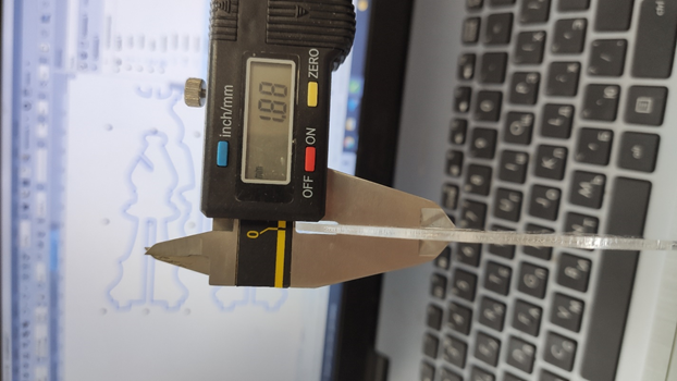 Тут описать почти нечего. Я взял небольшой кусок материала и путем проб и ошибок определил параметры для качественной резки: