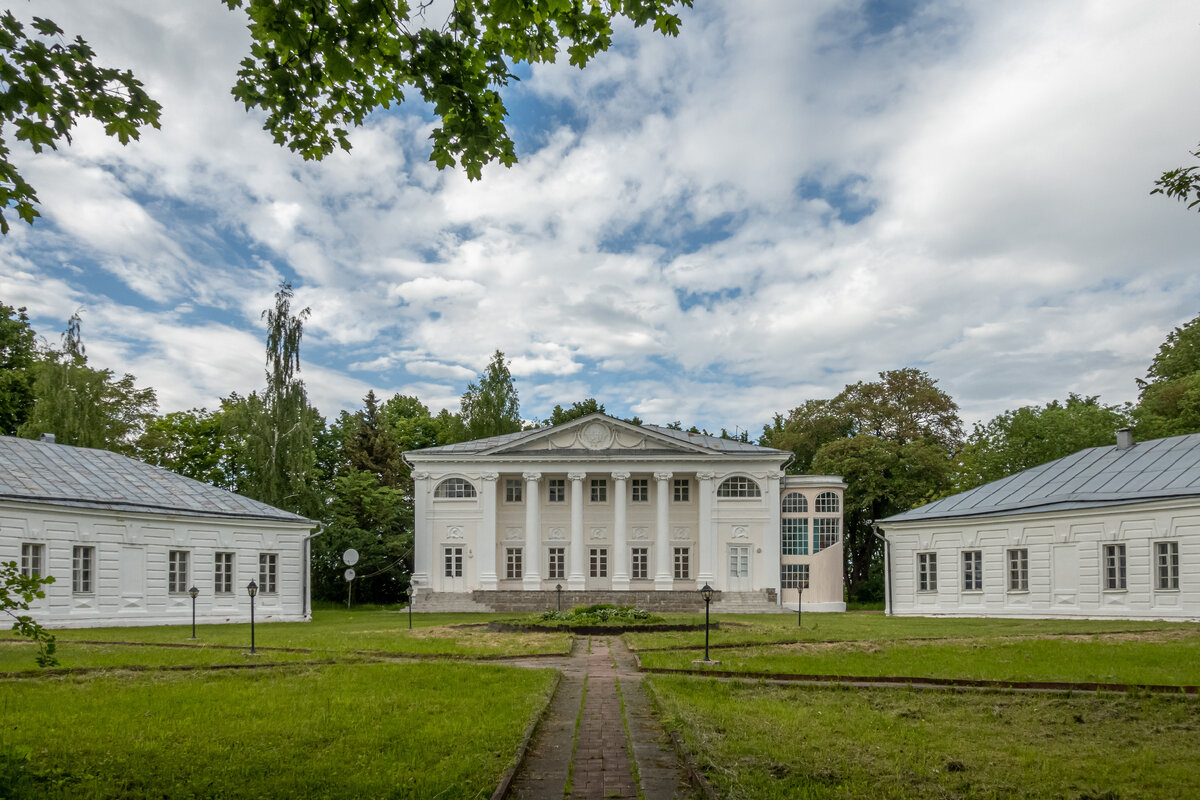— Нисколько. Так идите. Да, мы знали, что подмосковная усадьба... ...Волынщина-Полуектово используется как база Федерации тяжёлой атлетики и охраняется. Но были рядом и решили рискнуть. В итоге повезло. Нас дядька пустил и даже денег не взял. Ребят, которые приехали следом, уже нет. Поэтому, чтобы попасть наверняка, лучше ехать с экскурсией. Нас местечко впечатлило Прежде всего идеальной симметрией. Откуда ни посмотри — мечта перфекциониста. Только лишь пристроенная в XX веке к главному дому деревянная лестница нарушает идиллию. Но тоже в целом смотрится гармонично. Симметричный же эффект обеспечивают... ...четыре абсолютно одинаковых одноэтажных флигеля перед миниатюрным дворцом. Такое планировочное решение — редкость для наших усадеб. Оно напоминает королевский дворец Амалиенборг в Копенгагене. Если смотреть сверху, очень похоже. Только масштабы, конечно, гораздо скромнее Потому что Волынщина-Полуектово принадлежала не королевской семье. Сначала местечком владели по очереди воевода
