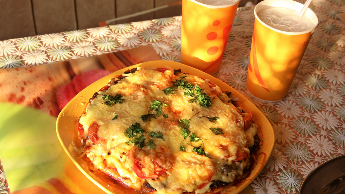 Сегодня я, в очередной раз была занята, как всегда, много дел, закружилась, завертелась, а кормить семью надо! И тут меня выручил быстрый и простой рецепт, который я очень часто использую. Во-первых, все любят пиццу, ну или почти все, а во-вторых ингредиенты могут быть разными, всё, что найдёте в холодильнике. Так вот, придя домой, я быстро замесила тесто на пиццу, для этого я взяла: Продукты: -3 яйца; -3 ст.л. сметаны или майонеза(можно пополам) ; -3 ст.л.муки(у меня высший сорт); - перец, соль, специи по вкусу; - соевый соус по желанию; Тесто хорошо взбиваем, по консистенции оно должно быть похоже на тесто для оладий. Для начинки можно взять что угодно, что найдете в своём холодильнике. Это может быть ветчина или вареная колбаса, копчённая колбаса или курица, сосиски, рыба, да что угодно. Самое интересное, что я всегда готовлю пиццу по-разному, почти никогда не повторяясь и всегда получается на отлично. Вызывая у своих домочадцев взрыв эмоций и шквал аплодисментов. Хочу сразу