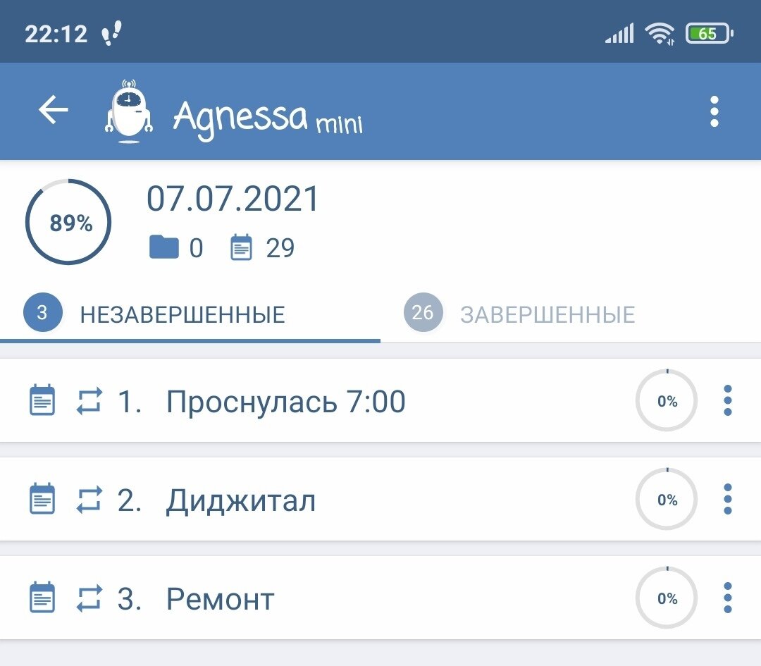Итак, подведем итоги первого дня согласно моим планам. Еще раз их напомню: 1. Учить английский язык - читать, писать, слушать, говорить. 2. Читать книги по саморазвитию. Применять техники. 3. Учиться и делать в сфере диджитал. 4. Физические нагрузки и здоровый образ жизни. 5. Писать. 6. Не оставлять дела на завтра без причины. 7. Закрывать чек-лист на 100%. 1. Учить английский язык - читать, писать, слушать, говорить. Почитала пару новых статей про самостоятельное изучение английского. Сначала залезла на сайт лигуалео, выяснила, что вообще все упражнения стали платными, теперь там можно только смотреть видео и читать книги и статьи на английском. открыла приложение симплер, с третьего уровня опять же за тренировки нужно платить. Нашла сайт по английским кроссвордам, решила 5, понравилось и было полезно, мозг заскрипел. Зашла на сайт дуолингуо, прошла тест, пропустила 18 уровней благодаря этому, вспомнила, что все же не полный профан. Итого - настраивала план занятий и вспоминала былое