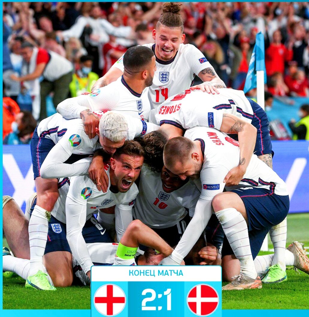 Несколько минут назад определился второй финалист с которым сыграет Италия. Во втором полуфинальном матче сборные Англии-Дания сразились в упорном поединке. Первыми в матче забили Датчане, которые открыли счёт на 30 минуте (со штрафного забил ДАМСГОР ). Но уже через небольшой промежуток времени Англия сравняла счёт, точнее Датчане забили сами себе на 39 минуте сам себе забил Кьер. И вот тут началась самая напряжённая игра турнира, Датчане хотели довести матч до серии пенальти, но Англию не устраивало это и они шли в атаку. В основное время матча развязки не произошло. В дополнительное время Англия все больше прессенговала и с помощью усилий Оазиса Стерлинга англичане заработали пенальти. Пробил пенальти Хари Кейн, он поразил ворота не с первого раза, а с добивания. И счёт стал (2-1) Англии оставалось просто довести дело до конца что безупречно получилось. Финал: будет убойный матч Где сразятся "ИТАЛИЯ-АНГЛИЯ"