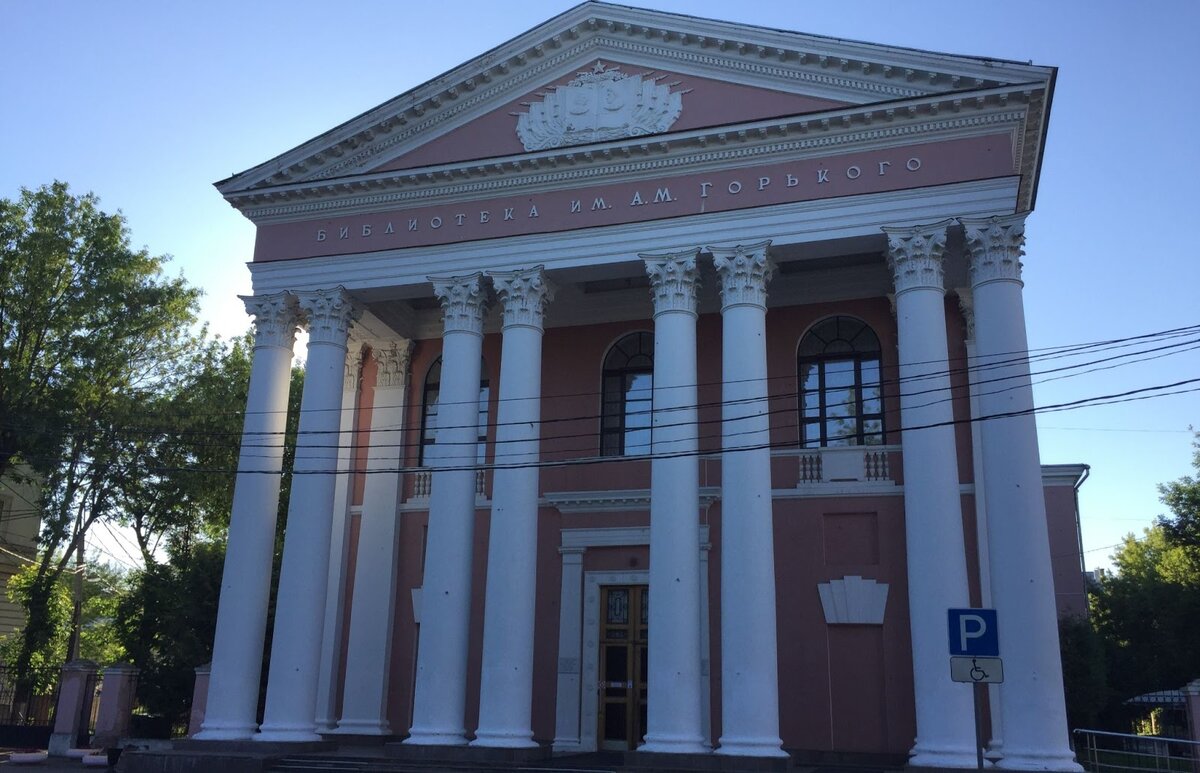 Мы пересекли Тверской проспект и идем дальше. Архитектура этого места повторяет архитектуру Санкт-Петербурга. Центр города был построен по аналогии с Питером. Дома здесь красивые, старинные, немного печальные. Свидетели вековых событий. Проходя мимо них, чувствуется веяние истории, а если представить, что чувствуют люди, живущие в этих домах, дух захватывает. Библиотека имени Горького Построена она была в 1860 году, в период общественного подъема, предпочтительности образования. Наполнялась библиотека пожертвованиями частных коллекций. Первое время средства на содержание библиотеки зарабатывали сами: книги выдавались за плату, продавались картины, редкие издания книг. Также принимались пожертвования. С 1918 года библиотека становится бесплатной. Основная цель - всеобщая грамотность населения. Во время войны 1941-1945 гг. библиотека была полностью разрушена. В 1951 году началось строительство нового здания. Архивы восстановили частично. Сегодня библиот
