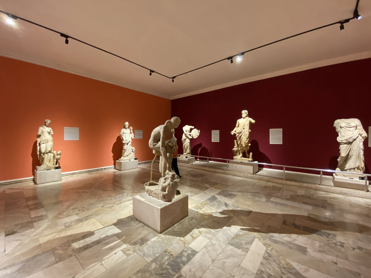 Осмотр начинают с зала естественной истории и доисторических времен — вазы, керамика, погребальные кувшины. Далее театральная галерея, в которой выставлены украшения, барельефы и статуи, некогда украшавшие величественный театр Перге. Залы императоров и богов — мраморные статуи II века н.э. Огромная экспозиция в зале саркофагов таинственная и мрачная, но интересная до мурашек. Надгробные стелы, саркофаги периода римского владычества из Сидемары и Памфилии.