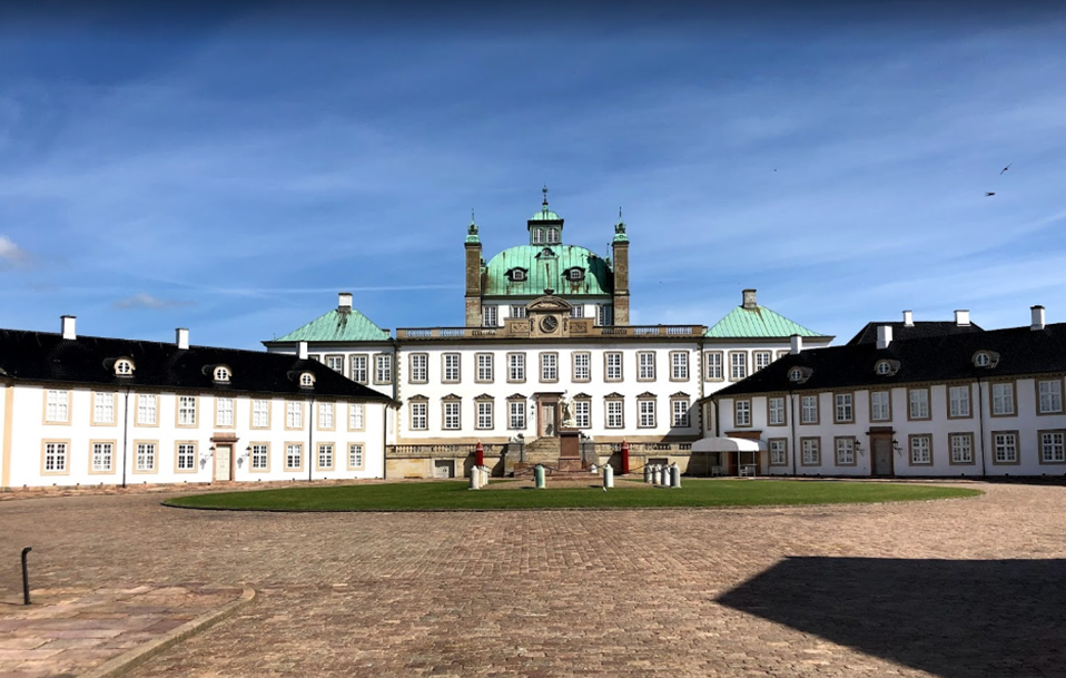 Замок Fredenborgs зрасположен примерно к северо-востоку от города Хиллерод в регионе Ховедштаден, на острове Зеландия, Дания. Фреденборг был построен в 1719 году как охотничий домик для короля Дании Фридриха IV и начал функционировать в 1722 году. Часовня была закончена в 1726 году. Первым архитектором был Йохан Корнелиус Кригер, который отвечал за чертеж главного здания по образцу, разработанному Никодимом Тессином. Помимо главного дома, он создал проект двух флигелей около замка, церкви и оранжереи, которая была построена в 1721-1725 годах и некоторые из небольших зданий. В 1731 году был построен кавалерийский корпус, спроектированный Кригером. В 1741 году поднят мезонин по проекту архитектора Лаурида де Тураха. В 1760 году была увеличена оранжерея и кавалерийский корпус по эскизам архитектора немецкого происхождения Якоба Фортлингса , а парк был сделан французским архитектором Николя-Анри Жарденом. В 1776 году по чертежам архитектора Каспара Фредерика Харсдорфа был
