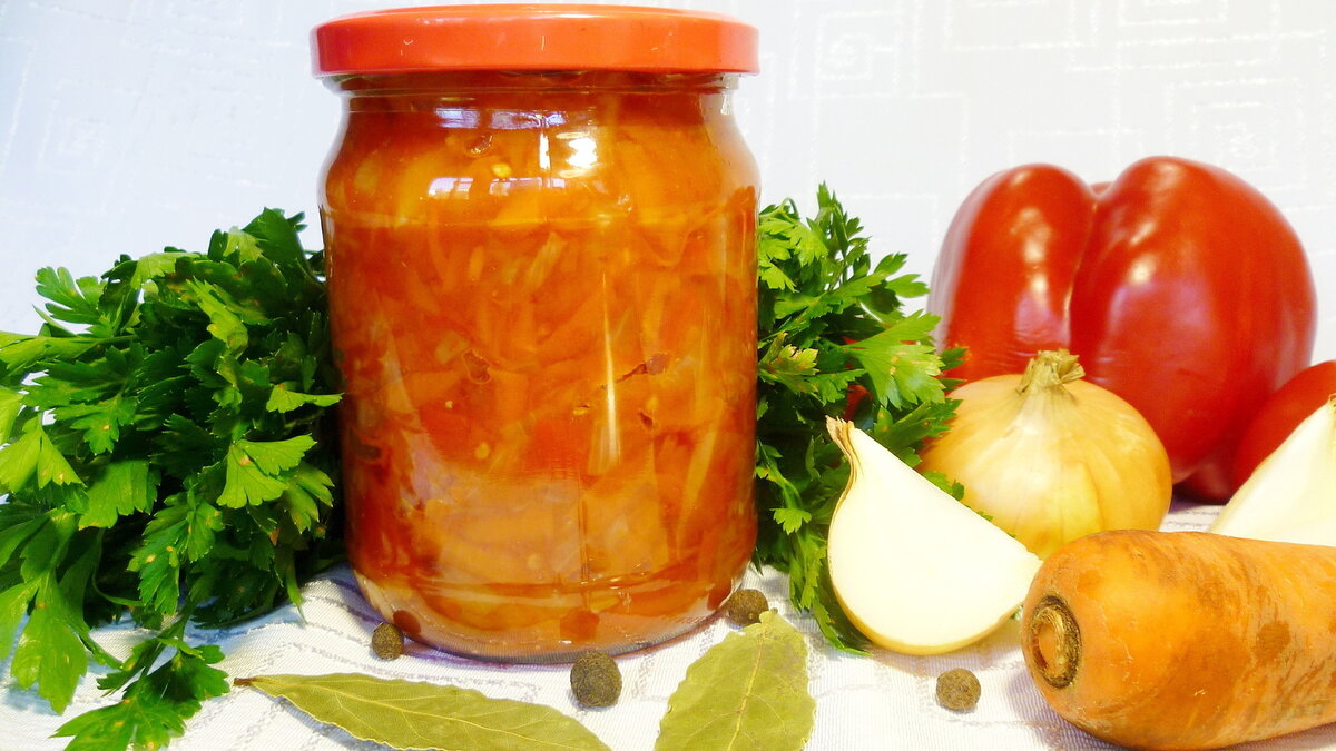 Рецептов приготовления этого вкусного салата существует огромное количество. Но проще и быстрее всего выбирать без стерилизации. Это заметно сэкономить ваше время, да и переставлять банки в кастрюлю и обратно не придётся.