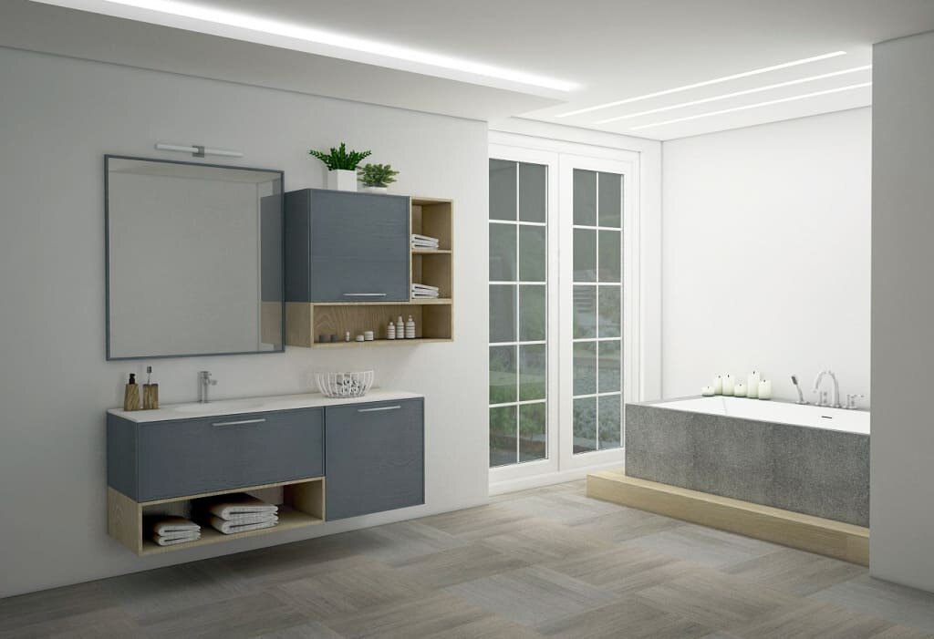 Для меблировки ванных комнат обычно используют тумбы, часто совмещаемые с раковиной, и шкафы для хранения различных гигиенических и косметических средств. И тумбы, и шкафы могут быть как напольными, так и подвесными. Для большинства материалов, кроме натурального камня, технических ограничений нет. Можно даже совместить напольные и подвесные предметы мебели.