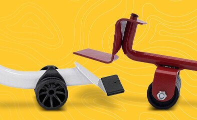 Яркий и универсальный транспортер подойдет для различной мебели. Его платформы имеют треугольную форму. Благодаря рельефной поверхности они не скользят. На опорах можно устанавливать как шкафы на ножках, так и без них. Маленькие бортики не дадут соскользнуть грузу во время езды. На рычаге установлена ручка из резины. Она не даст ладони скользить. Универсальное и практичное приспособление имеет тройные колеса с каждой стороны, что придает надежности, устойчивости, позволяет ездить по любым покрытиям.