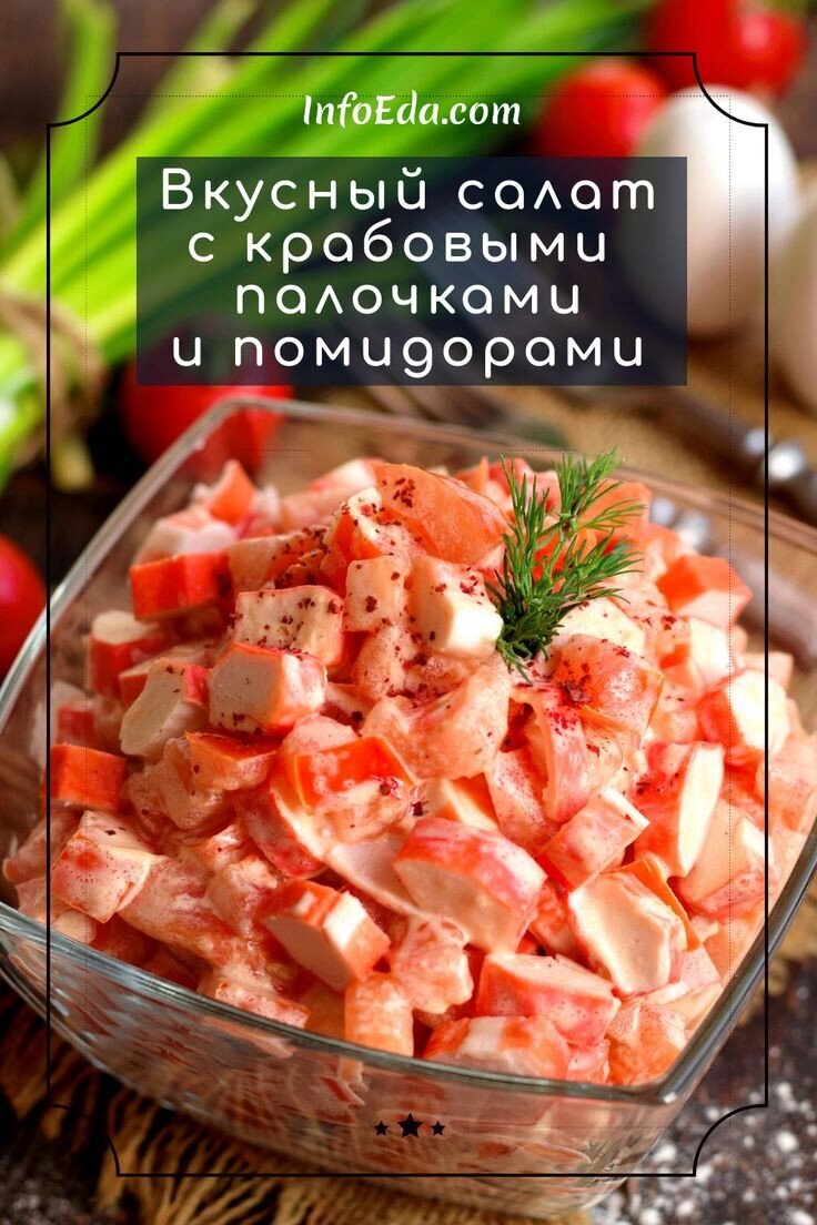 Салат с крабовыми палочками, помидорами, чесноком и майон. На его приготовления я трачу 10 минут и всего 6 ингредиентов.