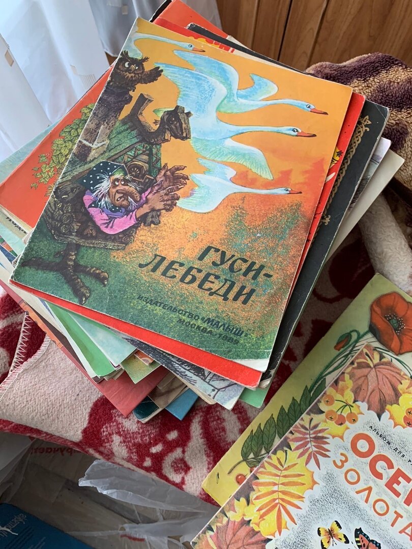 Сходила в нашу старую квартиру, где я выросла. У меня там много вещей осталось, но все я, конечно, забрать не смогу. Два года назад ушла из жизни наша бабушка, и некоторые ее вещи брат с сестрой перевезли сюда. Одна коробка стояла открытая и сразу привлекла мое внимание. Внутри - сокровище! Книжки, изданные в 70-80 годах, многие из которых в хорошем состоянии. Я их совершенно не помню, неужели они были у бабушки? Я схожу еще раз и снова их переберу, часть книг заберу для девочек. Сфоткала только то, что мне особенно понравилось. Вот такие сказки-открытки. "Иван-крестьянский сын". С обратной стороны текст. И потрясающие раскраски. Я даже сомневаюсь, давать ли эту красоту детям. Видимо, не только у меня были сомнения, потому что раскраски внутри чистые. Только одна картинка раскрашена, судя по аккуратности, взрослой рукой. Посмотрите, какие красивые рисунки. 79 год! В общем, рылась я в коробке, затаив дыхание. Пришли дети и я все аккуратно убрала на место. В следующий раз еще пофоткаю и