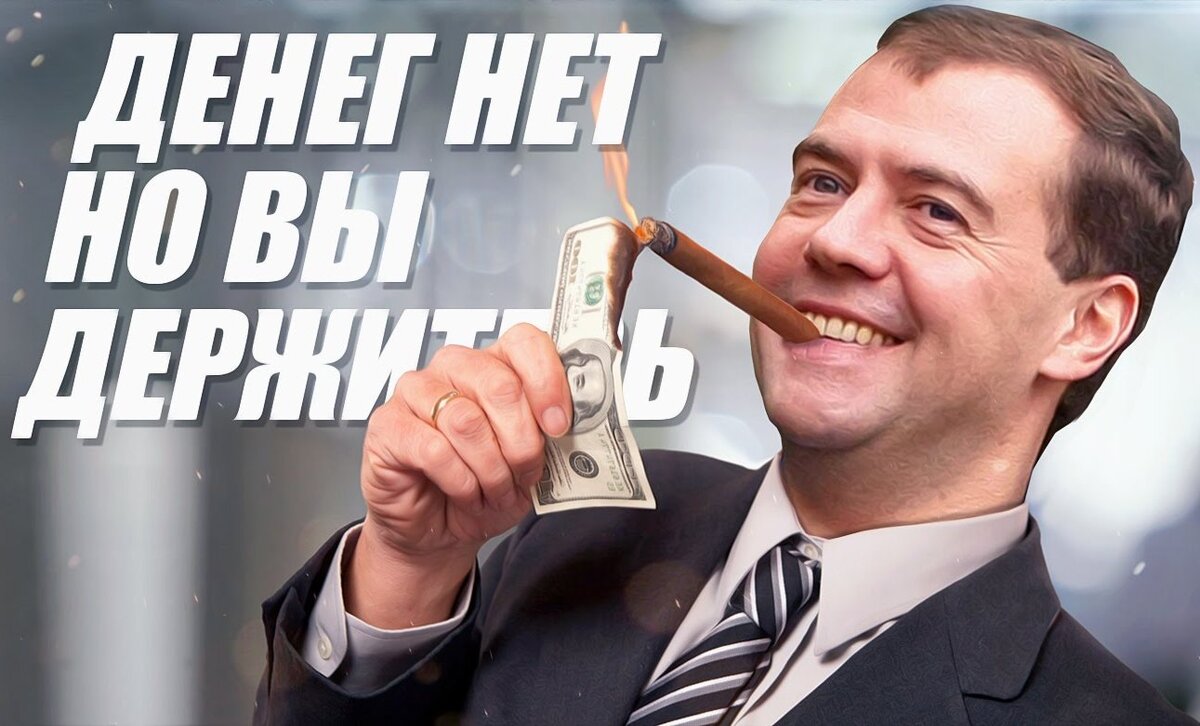 3. "Денег нет, но вы держитесь". Во время визита Медведева 23 мая 2016 года в Феодосию к нему подошла пенсионерка Анна Буянова, которая сказала, что у неё размер пенсии 8 тысяч рублей и спросила: