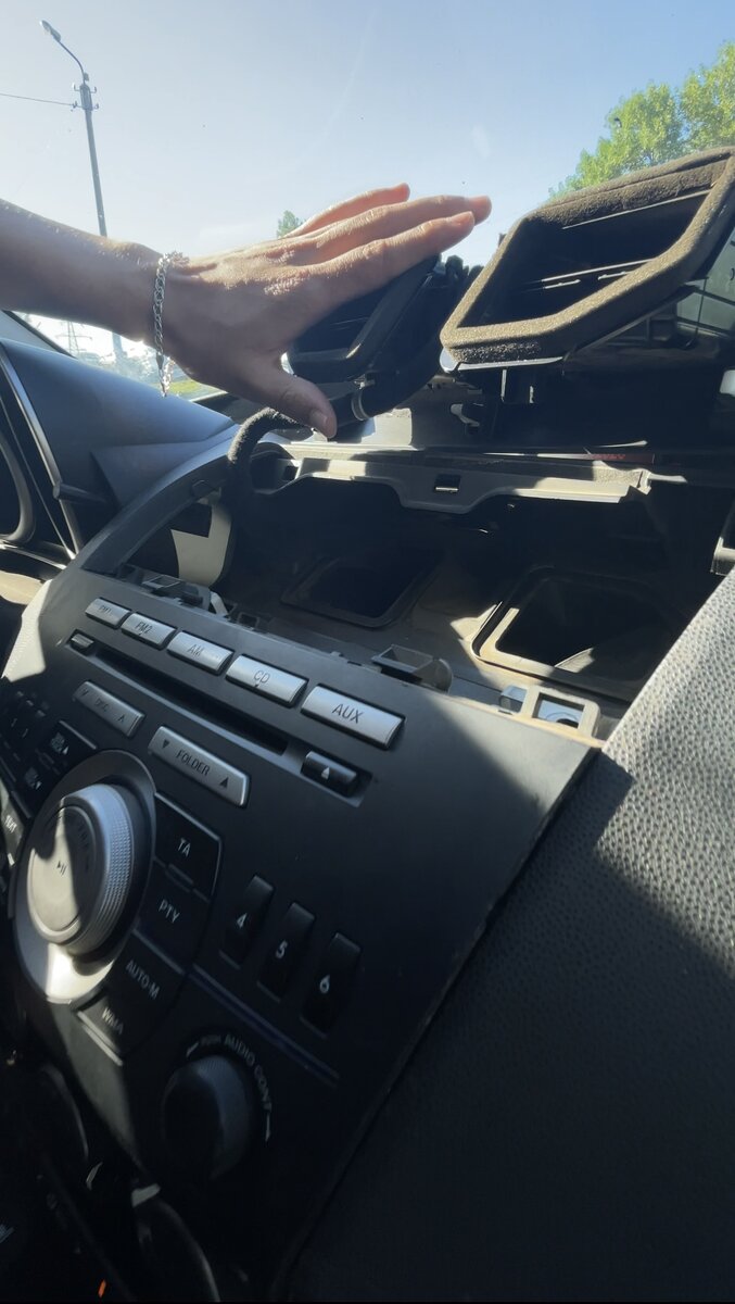 Хочу начать с того, что недавно приобрёл автомобиль Мазда 3 в кузове BL. Автомобиль классный, надежный, управляемый, комфортный, но вот в плане мультимедиа тут провал. Конечно,скорее всего для 2010 года это было отлично, но на сегодняшний день наличие только AUX, радио и дисков маловато будет. Поэтому я задумался о замене Штатного головного устройства, на магнитолу Android. Думаю перечислять преимущества данной магнитолы от штатной не имеет смысла, так как все понимают , что андроид магнитола - это грубо говоря планшет в автомобиле, с навигацией, блютуз, usb( целых 3 шт) и возможность установки любых приложений, что превращает ваш автомобиль почти в Теслу от Илона Маска. В общем меньше слов больше дела. Для замены Штатной магнитолы нам потребуется пластиковые съёмники, любо пластиковая карточка для демонтажа пластиковых элементов, так же нам необходима будет отвертка PH2( крестовая), изолента тряпичная и наши с вами руки. В первую очередь демонтируем воздуховоды над магнитолой поддев
