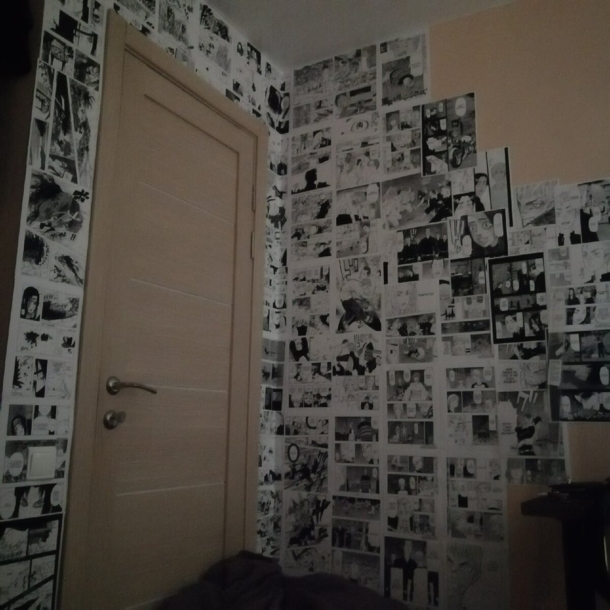 При переезде на новую квартиру ремонт делался на скорую руку и не было должных средств на красивый дизайн для стен. Думал, месяц-другой и появятся денежки ,а может и ремонт понравится. Но день за днем мне все меньше хотелось возвращаться в эти серые стены, хотелось чего-то нового. Спустя некоторое время в интернете набрелся на японскую мангу с интересными мотивами. Решил, вот, оно! Через 2 минуты уже стоял около стены и клеил листы на клей-пистолет. Предупреждаю, стержней для него понадобиться очень много!