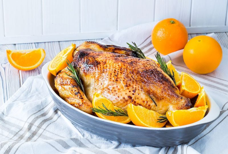 Запеченная курица является вкусным и очень сытным блюдом, которое часто подают как к праздничному столу, так и для особых случаев. Очень часто, курицу запекают частями, но наиболее вкусной она выходит запеченная целиком Факты о апельсинах: Апельсин занимает первое место в мире по весу урожая, собираемого ежегодно. Крупное апельсиновое дерево способно за год принести до сорока тысяч плодов. Апельсины бывают не только оранжевые, но и зелёные, причём зелёный цвет обычно имеют сорта, произрастающие в особо жарком тропическом климате. В Испании растёт около 35 миллионов апельсиновых деревьев. Около 85% всех собираемых в мире апельсинов идёт на производство сока. Неудивительно, что апельсиновый сок является самым популярным на Земле. Всего в мире существует около шестисот сортов апельсинов. Ингредиенты: Курица - 1 штука Мед - 4 столовые ложки Апельсины - 2 штуки Тертый имбирь - 40 г Растительное масло - 3 столовые ложки Специи по вкусу Крупная соль по вкусу Молотый красный перец по вкусу
