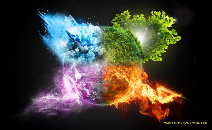 "Я – Север, ибо плоть моя – земля, Так пусть будет един со мной дух земли. Я – Восток, ибо дыхание мое – воздух, Так пусть будет един со мной дех воздуха. Я – Запад, ибо кровь моя – вода, Так пусть будет един со мной дух воды. Я – Юг, ибо дух мой – огонь, Так пусть будет един со мной дух огня. Я прошу четыре могучие силы Направить меня и защитить меня. Иаоу Иаоу Иаоу Иаоу" По мере чтения молитвы поворачиваетесь по необходимым сторонам света. При этом мысленно сливаетесь со всеми стихиями. Эта практика хорошо активирует нижние чакры связанные со стихиями.