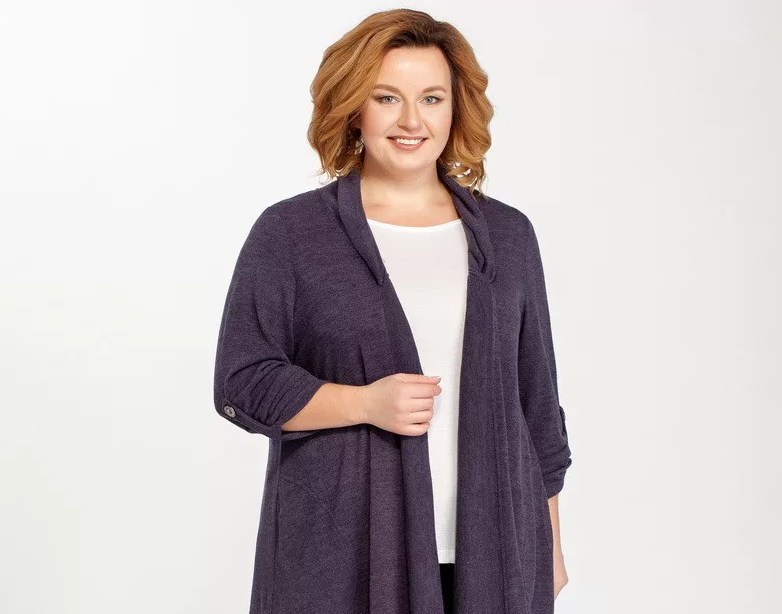 По праву считаясь многофункциональным предметом одежды, кардиган для полных женщин – это не просто возможность спрятаться за тканью. Эта довольно распространенная деталь гардероба может не только выполнять маскировочные функции, но и стать изысканным акцентом в грамотно подобранном ансамбле.