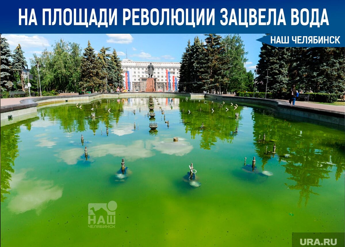 ⛲️ В фонтане на площади Революции позеленела вода. Причиной изменения цвета воды стала поломка ультрафиолетовой лампы. - Лампа, которая обеспечивает очистку воды, вышла из строя. В Челябинске найти новую не удалось, заказали в другом регионе, привезут на будущей неделе. Мы обратились к подрядчику, чтобы очистку фонтана проводили чаще. Завтра к вечеру вода должна стать чистой., — заявил глава Советского района Владислав Макаров. 🧪 Макаров отметил, что в воду фонтана не добавляют химикаты. Несмотря на запрет, в жару в фонтан забираются дети. Химикаты могут быть вредны для их здоровья. По материалам URA. RU
