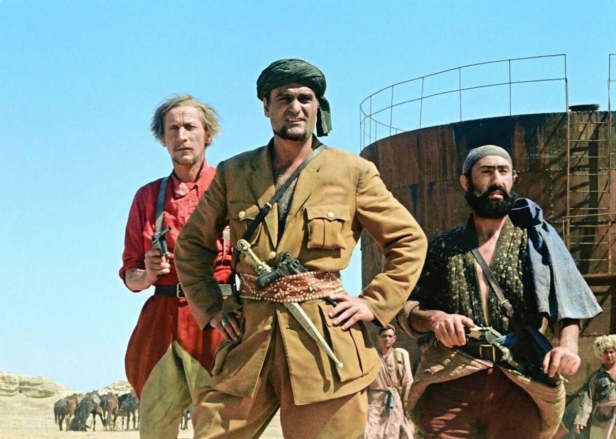 Жаркие события приключенческого фильма «Белое солнце пустыни» происходят на побережье Каспийского моря, где еще тлеют угольки гражданской войны. Хотя в целом советская власть установлена, интервенты изгнаны, а басмаческое движение разгромлено. Даже неуловимый Черный Абдулла бежит с казной за кордон.