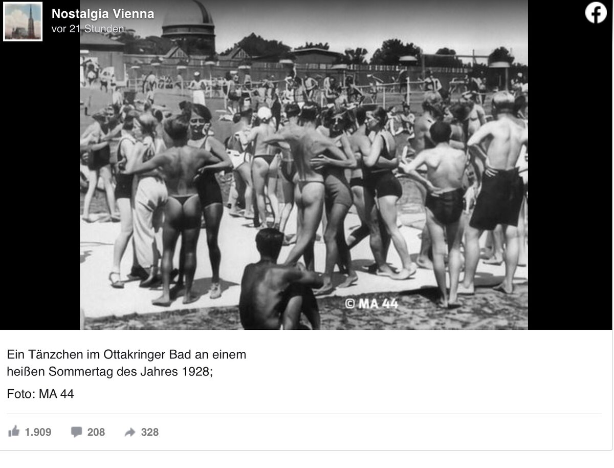 Если вы слышите истории о 20-х - 30-х годах прошлого века (как же странно это звучит - прошлого века, если ты в этом веке родился😂🙈), то какие образы возникают у вас перед глазами? Худенькие девушки в платьях с бахромой и бисером, в шляпках, губы накрашены очень выразительной темной помадой... А мужчины? Франты с напомаженными волосами, начищенными до блеска туфлями... И чарльстон... или фокстрот... При помощи одежды очень легко воссоздать атмосферу того или иного периода нашей жизни. А ЕСЛИ БЕЗ НЕЕ? Вот эта фотография, сделанная в Вене в 1928 году на территории пляжно-паркового комплекса, показывает нам, что именно австрийские мужчины были куда более откровенны в своих нарядах по сравнению с женщинами! И некоторые вещи нашего сегодняшнего бельевого гардероба вовсе не представляют собой какой-то относительно новый тренд. ОКАЗЫВАЕТСЯ, ВСЕ ЭТО НОСИЛИ УЖЕ ПОЧТИ СТО ЛЕТ НАЗАД! И обратите внимание, что делают отдыхающие - они танцуют! Какой там пляжный волейбол! - это не романтично! Н