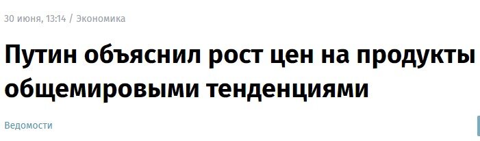 Вы все уже, наверное, десятки раз за последние полгода слышали, что в нашем безумном росте цен на продукты питания виноваты общемировые тенденции. В последний раз эту мысль озвучил никто иной как сам президент: Так он в ходе "Прямой линии" отвечал на вопрос россиянки, почему бананы из Эквадора стоят дешевле, чем морковь из России. Я, если честно, совсем не понял логики этого ответа, ведь бананы то "мировые", а морковь "отечественная". Тем не менее, прозвучало именно так: Прозвучал этот ответ в последний день июня, 30 числа. И касался он цен на продукты именно в этот период (то есть, на конец июня). И вот, спустя неделю мы узнаем, что в июне, на самом деле, мировые цены на продукты как раз начали падать. Средний мировой индекс продовольственных цен, показывающий изменение цен на большой перечень продуктов, в июне упал на 2,5% в сравнении с маем. До этого он 12 месяцев неуклонно рос. Существеннее всего подешевело подсолнечное масло - на 9,8%, цены на зерновые упали на 2,6%, на молоко - н