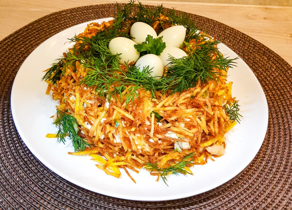 Что то давно салатов не готовила🤔, решила "гнездо глухаря" приготовить.