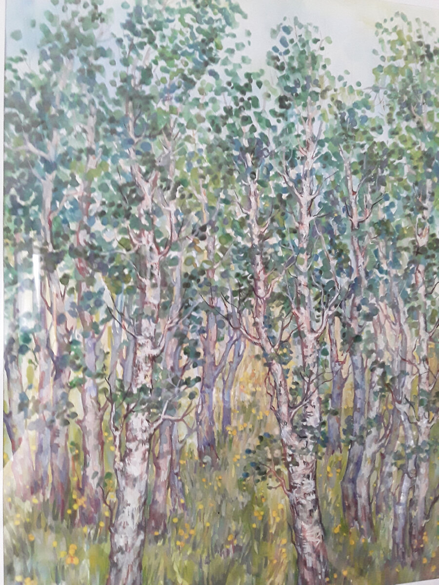 На фото : Молодой березняк с покровом из разнотравья. Пейзаж Татьяны Коршуновой, заслуженного художника - педагога. В таких насаждениях можно встретить и землянику, и костянику, и разнообразие цветущих растений. Июль, жара. В такую погоду, если негде купаться, хорошо спрятаться в тени деревьев. В середине июля должен закончиться цикл генерации лесных клещей, можно будет спокойнее гулять по лесу, Только не теряйте бдительность : как исключение из правил всегда найдется "дурной долгожитель". Сама на практике со студентами нашла где -то такого и обнаружила уже на другой день, просто не ожидала такой подлянки со стороны этих паразитов. Хорошо, что оказался здоровый. Мой муж однажды, когда собирали землянику в таком же березняке большой компанией, решил отдохнуть с мужчинами на поляне. А через несколько дней, собираясь в командировку, узрил паразита на ноге. Я его извлекла "профессионально" с хоботком, посадила в пробирку и отправила обоих (клещ был мужской особью) в санэ