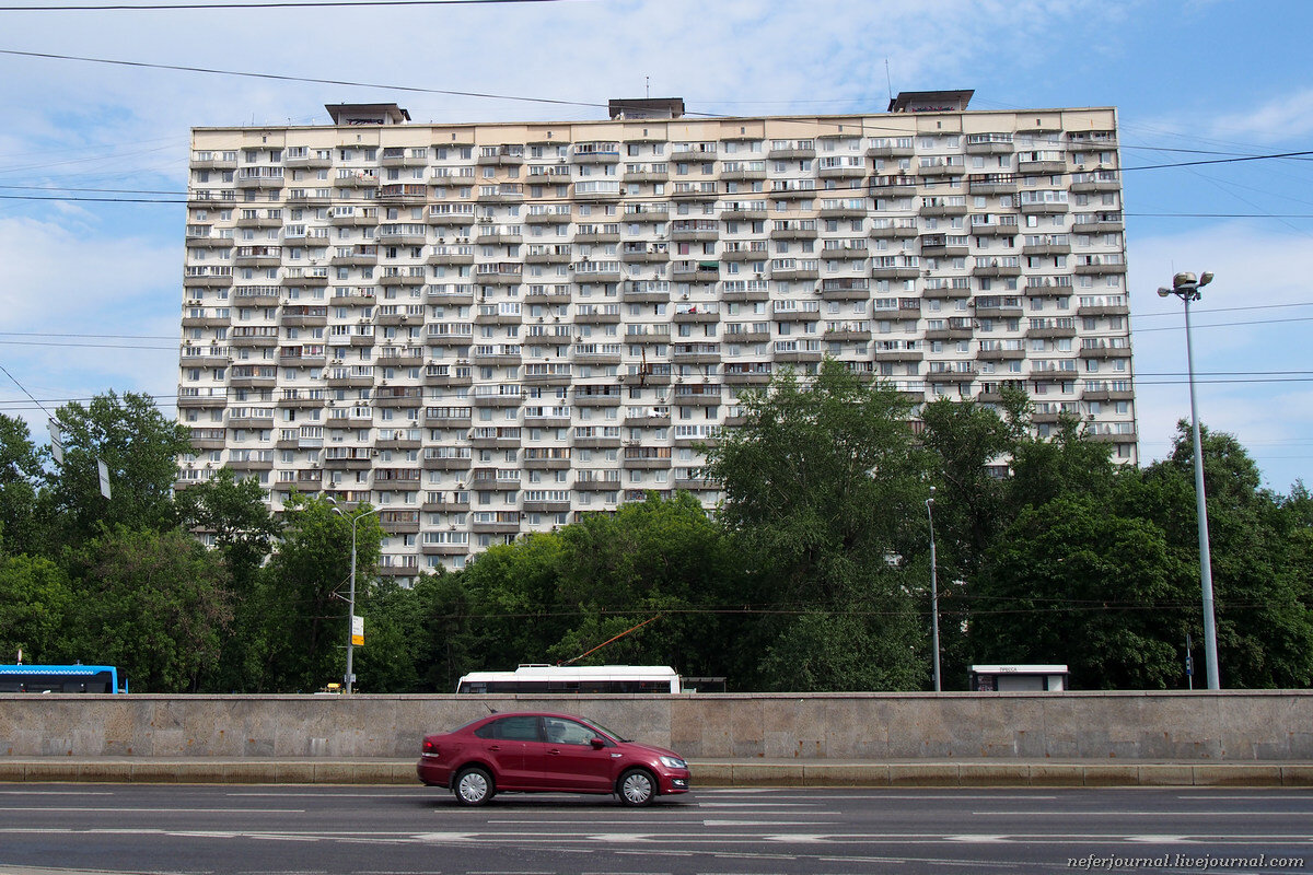 Это самый высокий панельный дом Москвы советской постройки — 25 этажей. В нем жил Константин Кинчев, в одном из подъездов снимали эпизод для фильма «Усатый нянь». Да и вообще это просто культовый дом. Дома на ножках — особое явление в архитектуре. В Москве таких несколько. Самый знаменитый — дом авиаторов. Также известны пережившие недавнюю реконструкцию дом Наркомфина и дом-коммуна на улице Орджоникидзе. Адрес: проспект Мира, 184 корпус 2. Дом построен в 1968 году. Это третий экземпляр из серии II-57/17. Первый расположен в районе станции метро Алексеевская, второй — на Смоленском бульваре. Проект экспериментальный, это переход от 9-этажного строительства к более высотным домам. Еще одна особенность этого дома — балконы. Они расположены в шахматном порядке и соединяются под углом. Выглядит необычно. В доме есть одно-, двух-, трех- и четырехкомнатные квартиры, от 28 до 84 квадратных метров. На уровне улицы ножки и подъезды, второй этаж технический, с третьего начинаются жилые.