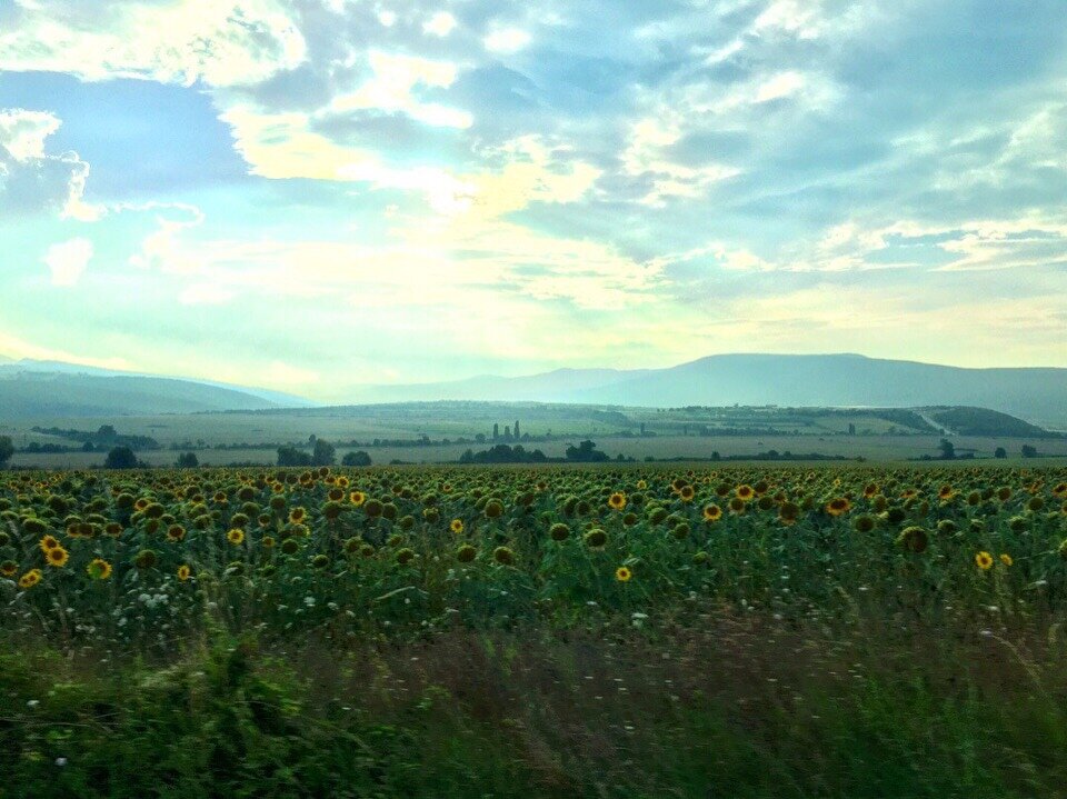 Золотистые поля подсолнуха сопровождают повсюду при путешествии по стране, дух захватывает от вида желтого бескрайнего моря.