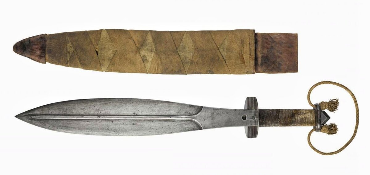 Сегодня хочу рассказать о валлийском ноже. Этот довольно редкий экземпляр обязан своим появлением оружейнику-реставратору Феликсу Жуберу. Он работал в Виндзорском замке и был замечен в фальсификации старинных предметов, продавал оружие и доспехи под видом антиквариата. Однако это ему не помещало разработать и запатентовать нож для траншейных боев. Траншейные ножи получили огромное распространение во время Первой мировой и были основным оружием в узких окопах и блиндажах. Данный экземпляр был приобретен между 1916 и 1917 годами Томасом Эвелином для оснащения батальона валлийских королевских стрелков, в котором он был заместителем. В патентной заявке Жубер утверждал, что в основе его ножа лежит исторический валлийский меч, однако ученые все же опровергли существование этого средневекового оружия. Скорее всего, Жубер рассчитывал таким образом надавить на национальную принадлежность оружия. Все же в его разработке прослеживаются черты мечей позднего Бронзового века, которые находят по вс