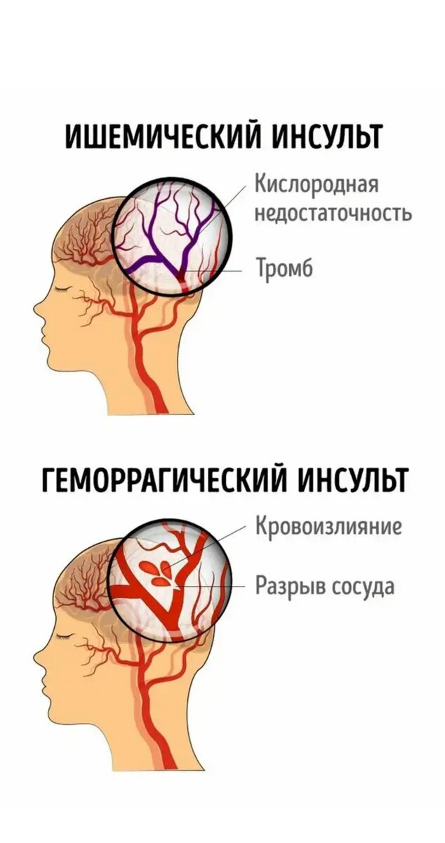 Что это такое? Инсульт – это нарушение кровообращения в головном мозге. Он может возникнуть из-за разрыва сосуда или его закупорки тромбом. В таком случае к нервным клеткам не поступает нужное количество кислорода, глюкозы и других питательных веществ, что может привести к их гибели. Существуют два различных вида инсульта: Ишемический, Геморагический Существуют несколько факторов, повышающих риск развития инсульта, в их числе: избыточный вес, высокий уровень холестерина, сахарный диабет, гипертония, употребление алкоголя и наркотиков, курение. Помимо этого, врачи учитывают генетическую предрасположенность и возраст: болезнь чаще поражает тех, кому больше 45 лет Признаки и симптомы Чтобы проверить наличие предупреждающих признаков инсульта, можно использовать западное мнемоническое правило FAST (англ. — «быстро»), которое означает : F — face — «лицо» A — arm — «рука» S — speech — «речь» T — time — «время» Первый симптом — асимметрия лица. Если попросить человека улыбнуться, он не смож