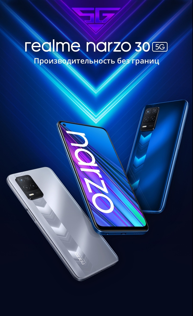 Здравствуйте, сегодня расскажу про такой смартфон, как Realme narzo30 5G. Дисплей 6.5 с частотой обновления 90Гц, при использовании чувствуется разница плавности по сравнению с 60Гц. Тик экрана IPS Процессор MediaTek MT6833 Dimensity 700 5G Частота процессора 2.2Ггц; 8 ядер Оперативная память 4гб Встроенная память 128гб Возможность вставить micro SD card на 1024гб. Камера Основная камера у него на 48мп, фотографирует хорошо Ультраширокий объектив делает растянутое фото Макро объектив я ещё не понял для чего он нужен в телефоне, но он тоже не очень. Фронтальная камера Фронтальная камера я считаю у него хорошая на 16мп фотографирует хорошо. На аккумуляторе компания Realme не поскупилась и поставили аж 5000Мач Мощность зарядки 18Вт 50% за 50минут Разъемы USB-C и Mini-Jack(3,5)мм Вот такой вот обзор, если вы хотите сравнить этот телефон, ставте лайки Спасибо что дочитали до конца. Всем удачи и пока