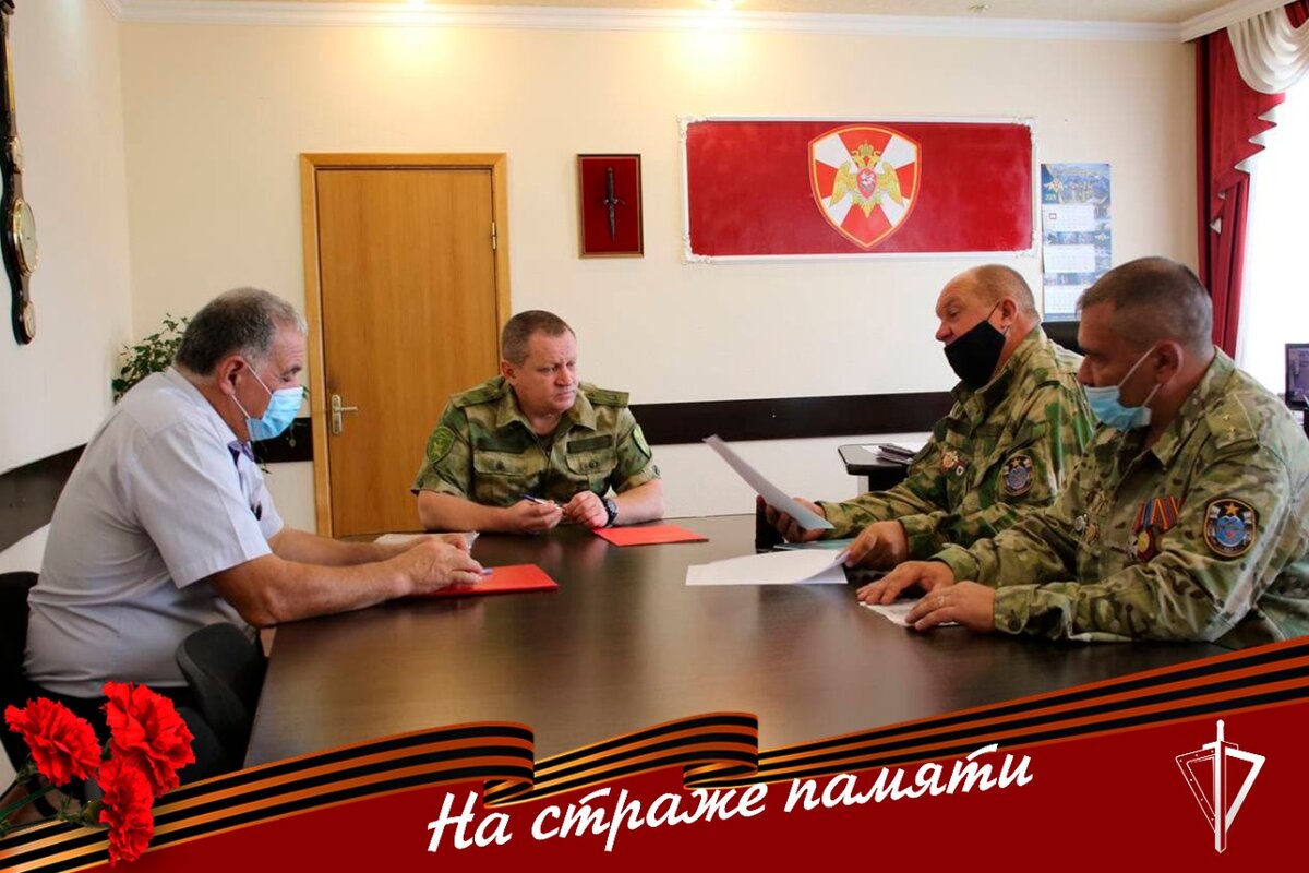 В рамках встречи начальника Управления Росгвардии по Кабардино-Балкарской Республике полковника полиции Сергея Васильева и руководителя региональной общественной организации военно-патриотический поисковый отряд «Кавказский рубеж» Виктора Цибина было подписано соглашение о совместной деятельности. Полковник полиции Сергей Васильев отметил, что в рамках всероссийской ведомственной акции «На страже памяти» сотрудники ведомства ведут волонтерские поисковые работы в ряде регионов страны, направленные на сохранение памяти, восстановление могил и перезахоронение солдат и офицеров, погибших в годы Великой Отечественной войны. «Данное соглашение поможет не только совместной созидательной работе, но и увеличит эффективность деятельности по военно-патриотическому воспитанию подрастающего поколения и повысит уровень взаимодействия между организациями», - подчеркнул начальник тероргана.